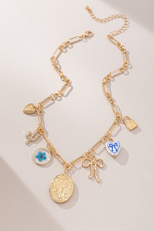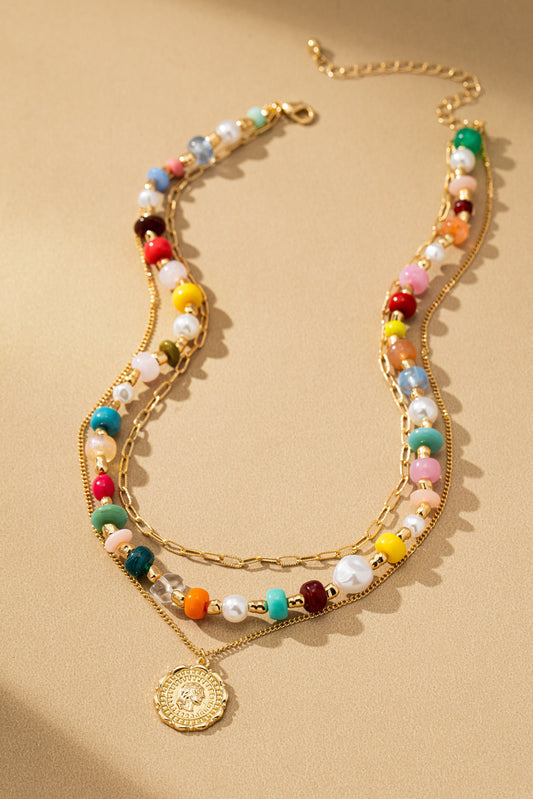 18k Gold Non-tarnish Stainless Steel Heart and Beaded Necklace