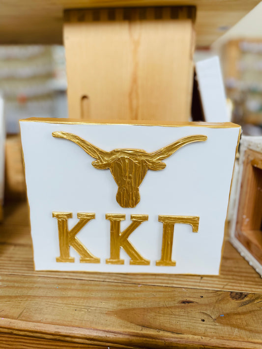 Kappa Kappa Gamma Gold Letters with Longhorn on 8x10 Canvas