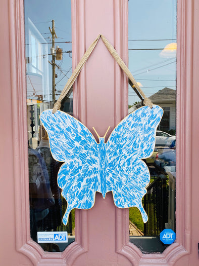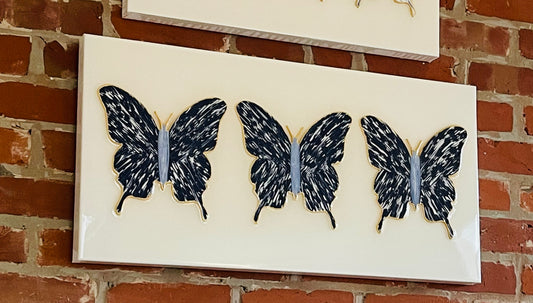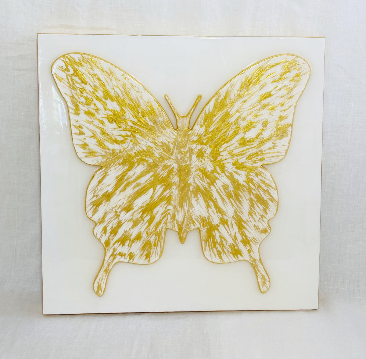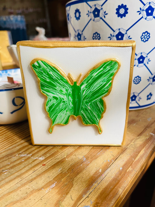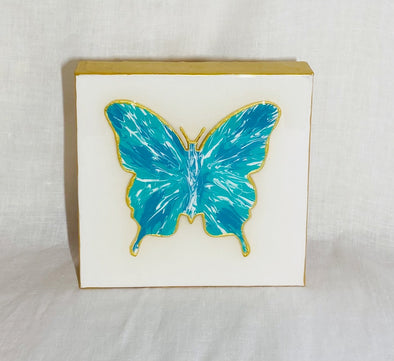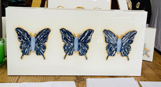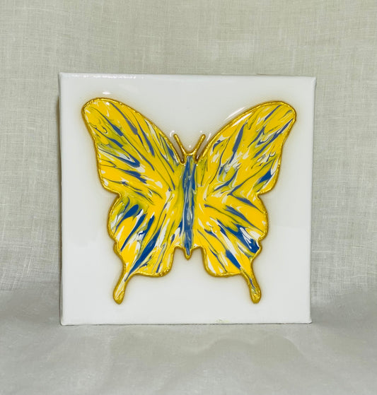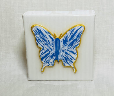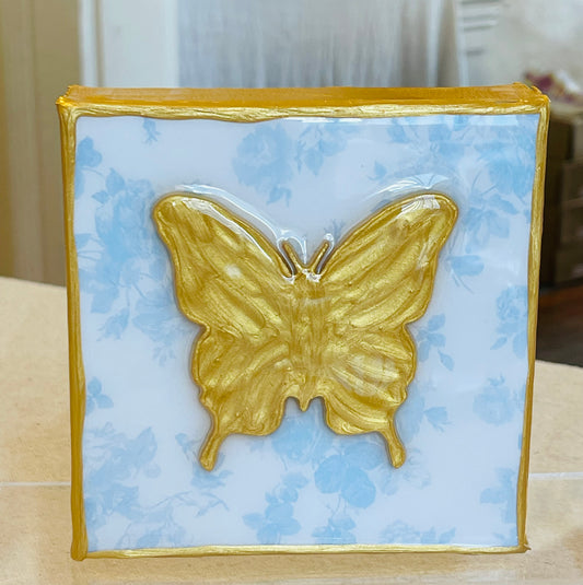 5 Gold Butterflies on Blue Floral 8x8 Canvas
