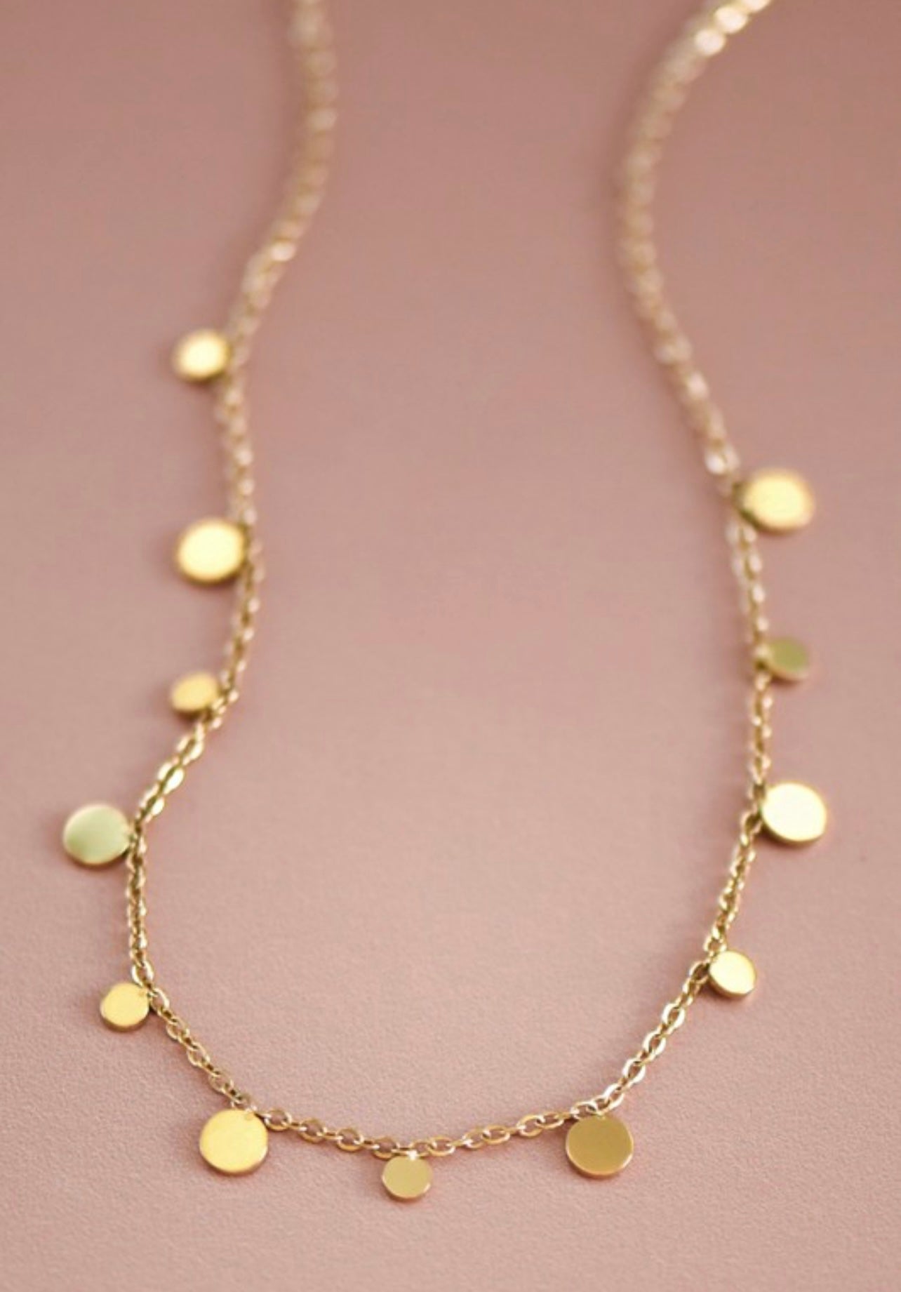 18K Gold Non-Tarnish Stainless Steel Disc Necklace