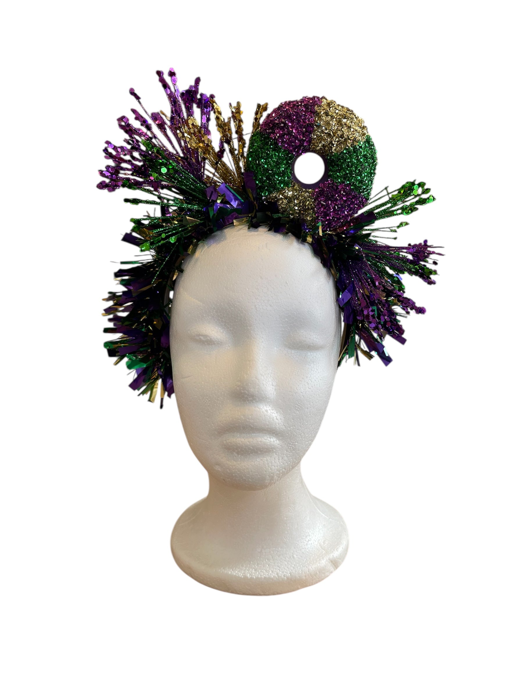 Fun and festive Mardi Gras headband with a King Cake to top it off!