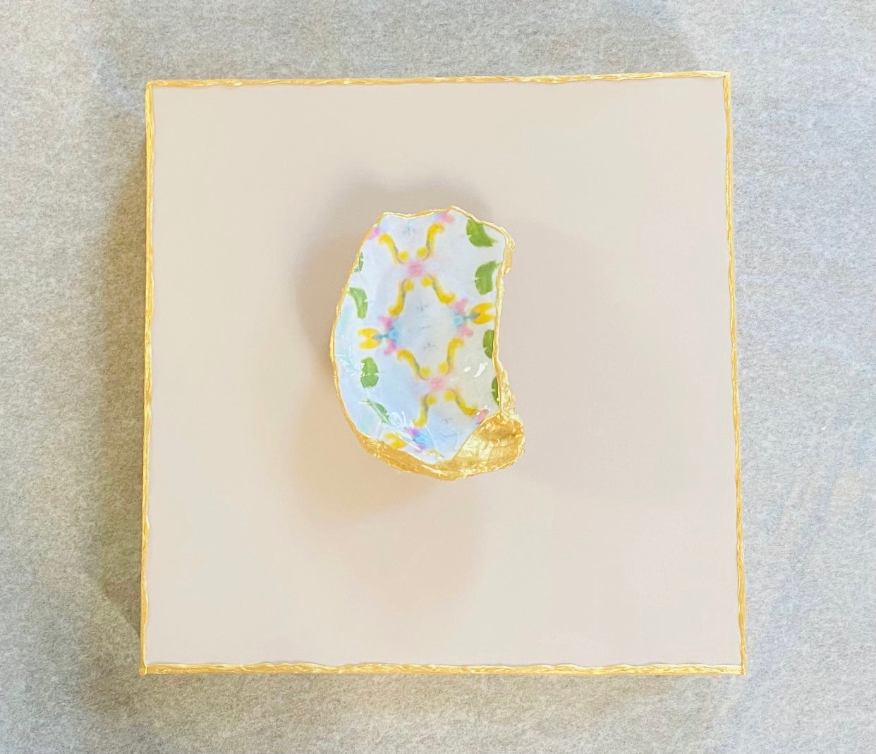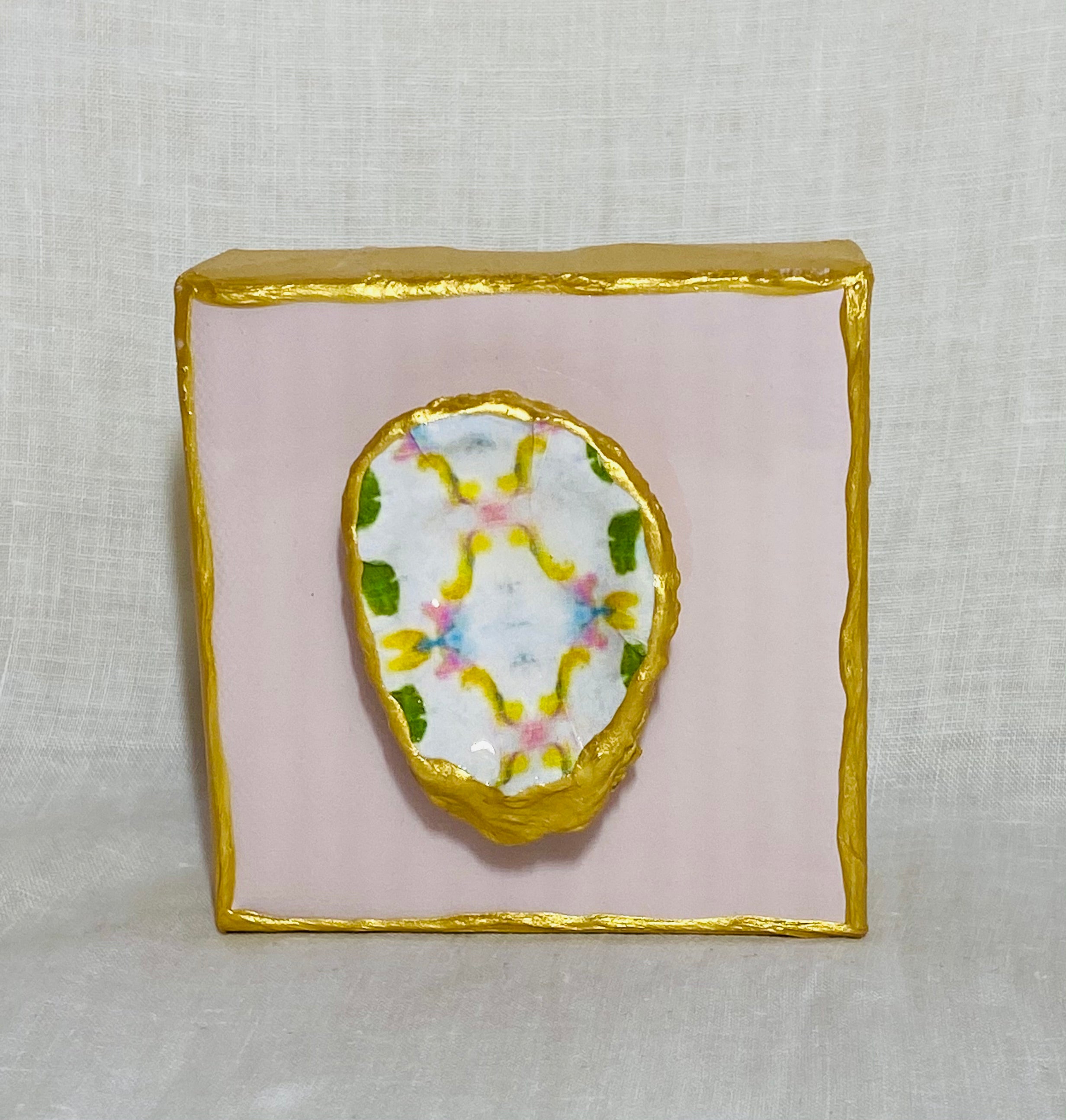 So in love with this light pink canvas with the beautiful decoupage gold trim oyster. Pretty in any room but especially in any nursery or little girls room. Available on 4x4, 6x6, 8x8, 10x10 and 12x12 Canvas. The larger canvases have larger oysters on them.